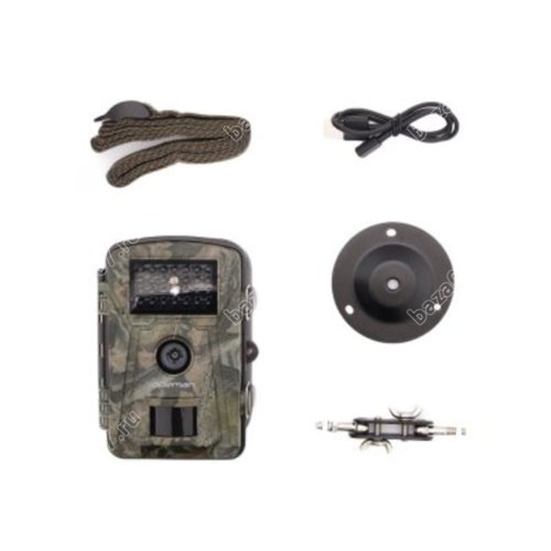 Фото и видео регистратор, используемый для наблюдения за животными в их естественной среде обитания. Фоторегистратор выполнен в пластмассовом корпусе, камуфлированном под кору дерева. В основе прибора заложена CMOS матрица на 16Мп, которая позволяет снимать видео разрешением 1080Р или 720Р. Угол обзора камеры 50 градусов. Для съемки в условиях недостаточной освещенности прибор оборудован ИК светодиодами дальностью подсветки 18 метров. Датчик движения срабатывает на максимальной дистанции в 18 метров. Прибор позволяет настраивать режимы съемки, количество фотографий в серии и длительность ролика видео по срабатыванию датчика движения. Запись медиафайлов производится на карту памяти объемом до 32 Гб. Питается прибор от 8 батареек формата АА.